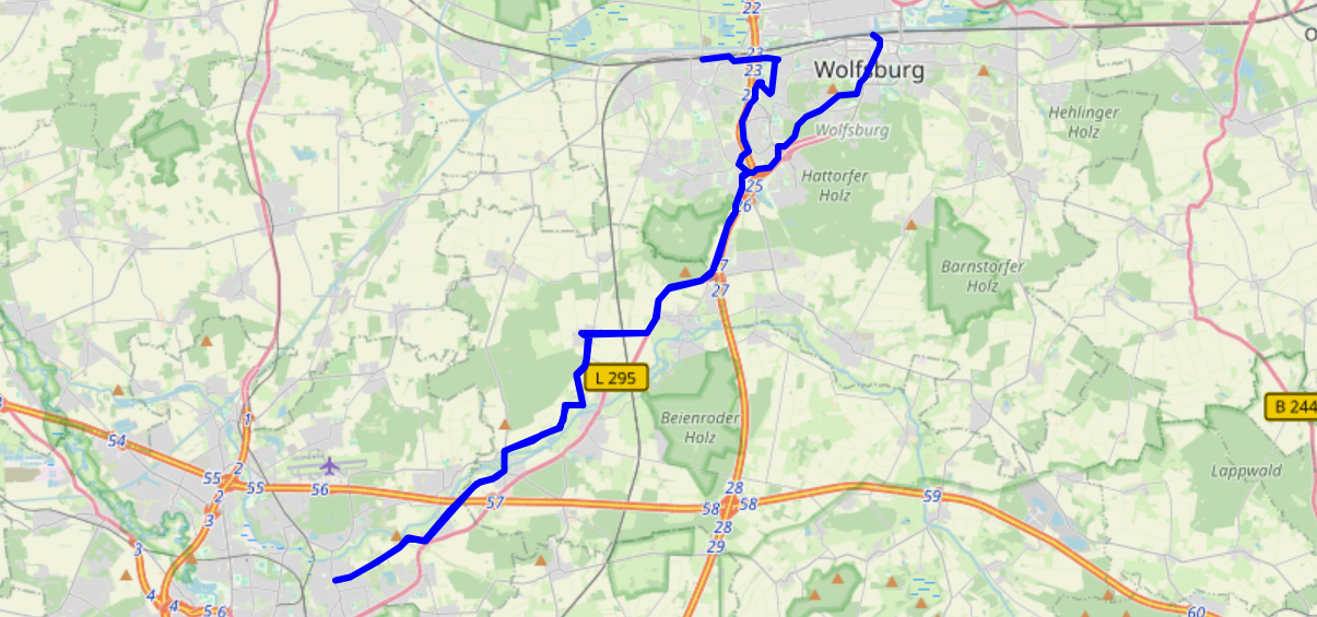 Dann ging die Fahrt auf dem Radschnellweg los! Da es für den Freizeitverkehr attraktiver erschien, wurde die Planungsalternative über Westhagen gewählt. Ab dem Ortsausgang Mörse treffen Alternativ- und Hauptroute des RSW aufeinander und führen entlang der A39 und der L295 (ehemalige B248), über Lehre nach Wendhausen und von dort bis zum „Braunschweiger Ringgleis“ wo der RSW nach dem uns vorliegenden Planungsstand endet.