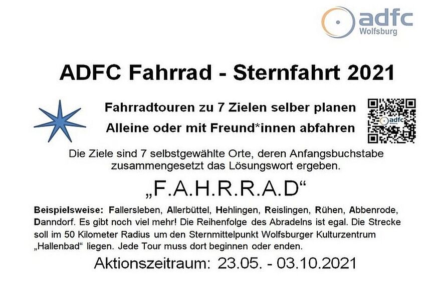 Der ADFC KV Wolfsburg e.V. lädt ein zur Aktion "Fahrrad - Sternfahrt 2021".